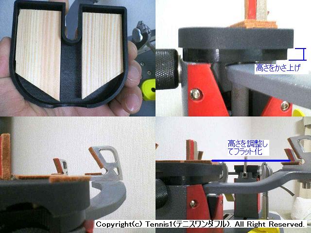 「もう一歩の部分-A」に対する改善策です。このカスタマイズはお勧めです。実際にガットを張ったことがある人ならバネが欲しい理由は分かると思います。上下動が多いと、ガットを閉めるときに面倒なのは勿論ですが、上下動が大きいということは、ガットの閉めを開放したときに、クランプを下に落とす幅も大きくクランプの衝撃も大きくなります。バネを入れることで上下動を少なくして、衝撃吸収の効果も得られてます。
